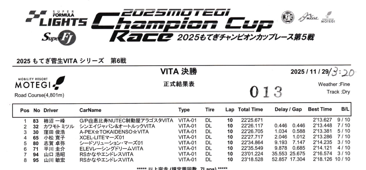 これにて2025もてぎ・菅生VITAシリーズは終了。