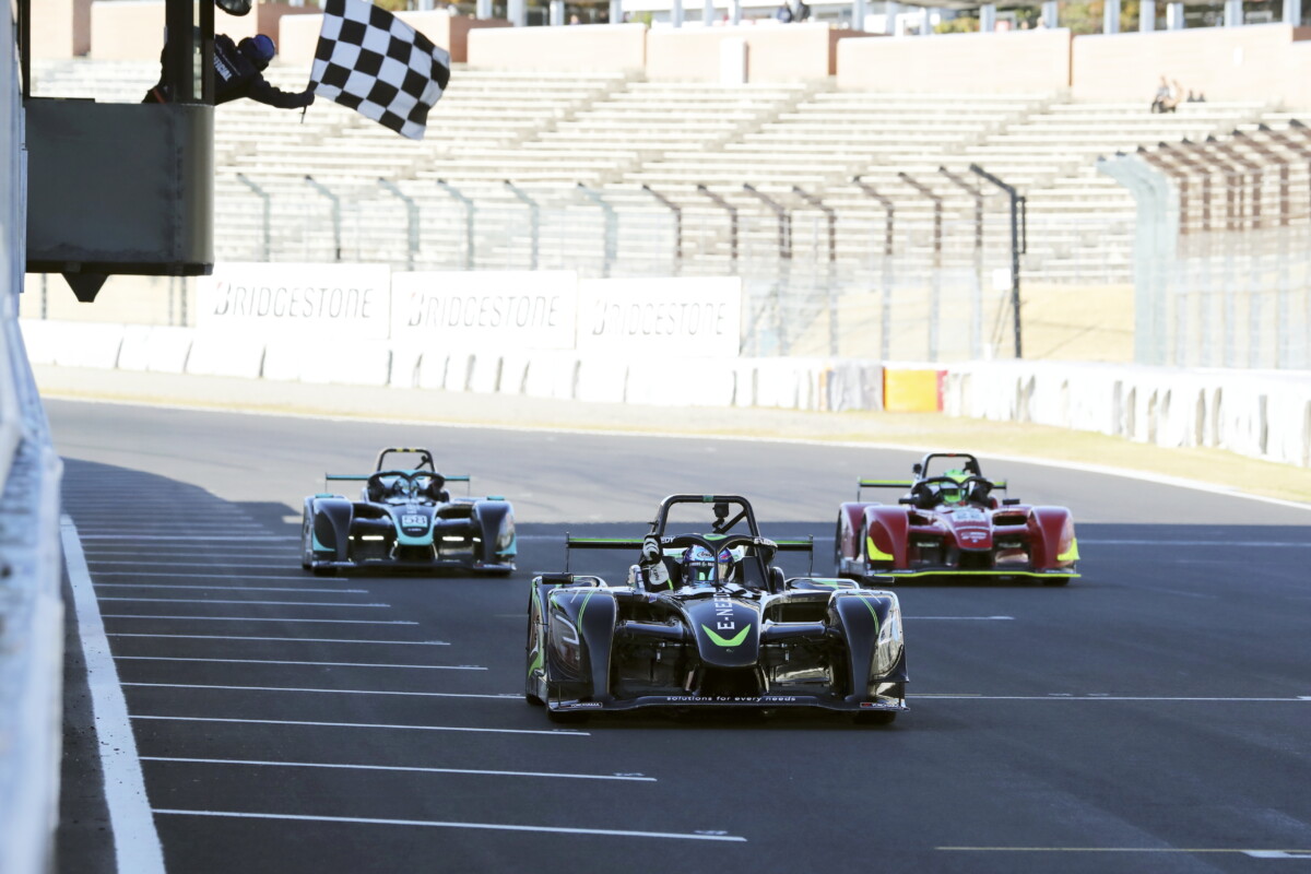 本来の第4戦は、予選が雨に見舞われ、決勝はレコードラインだけは乾いているという状態だったが、再レースはコンディションにも恵まれ、青空の下での実施となった。