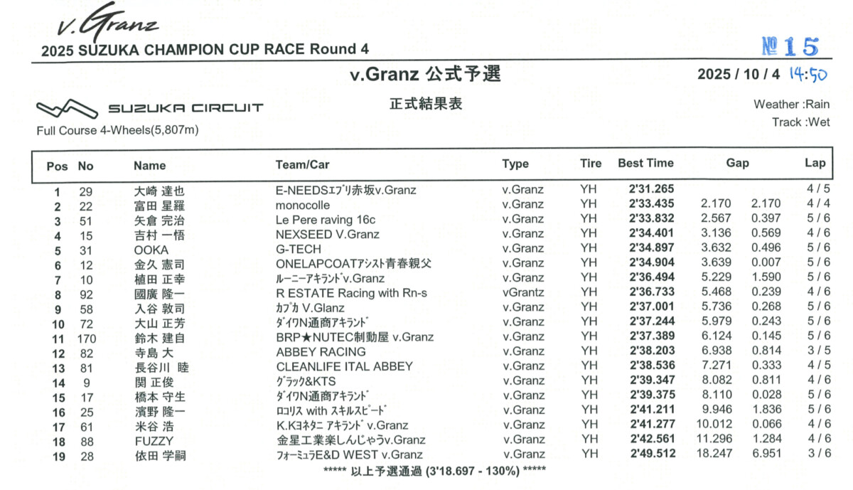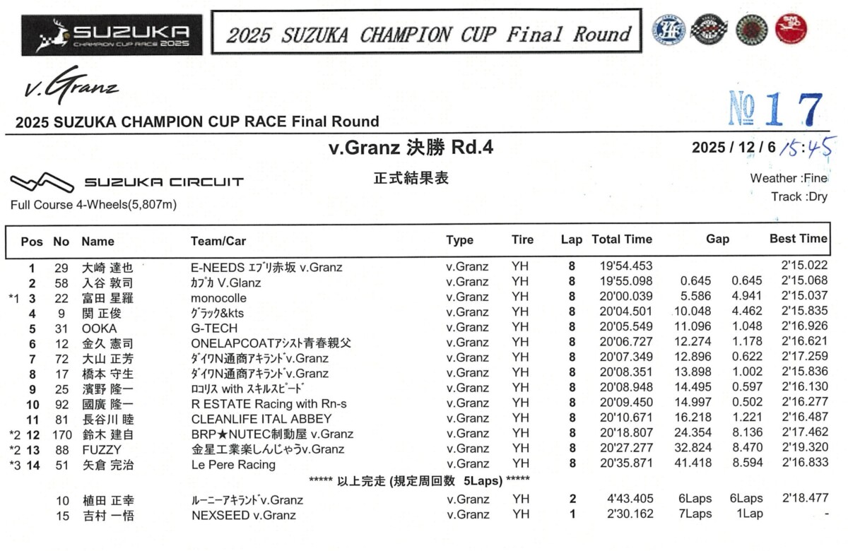 鈴鹿のv.Granzは、MEC 120を挟んで今回が4戦目。