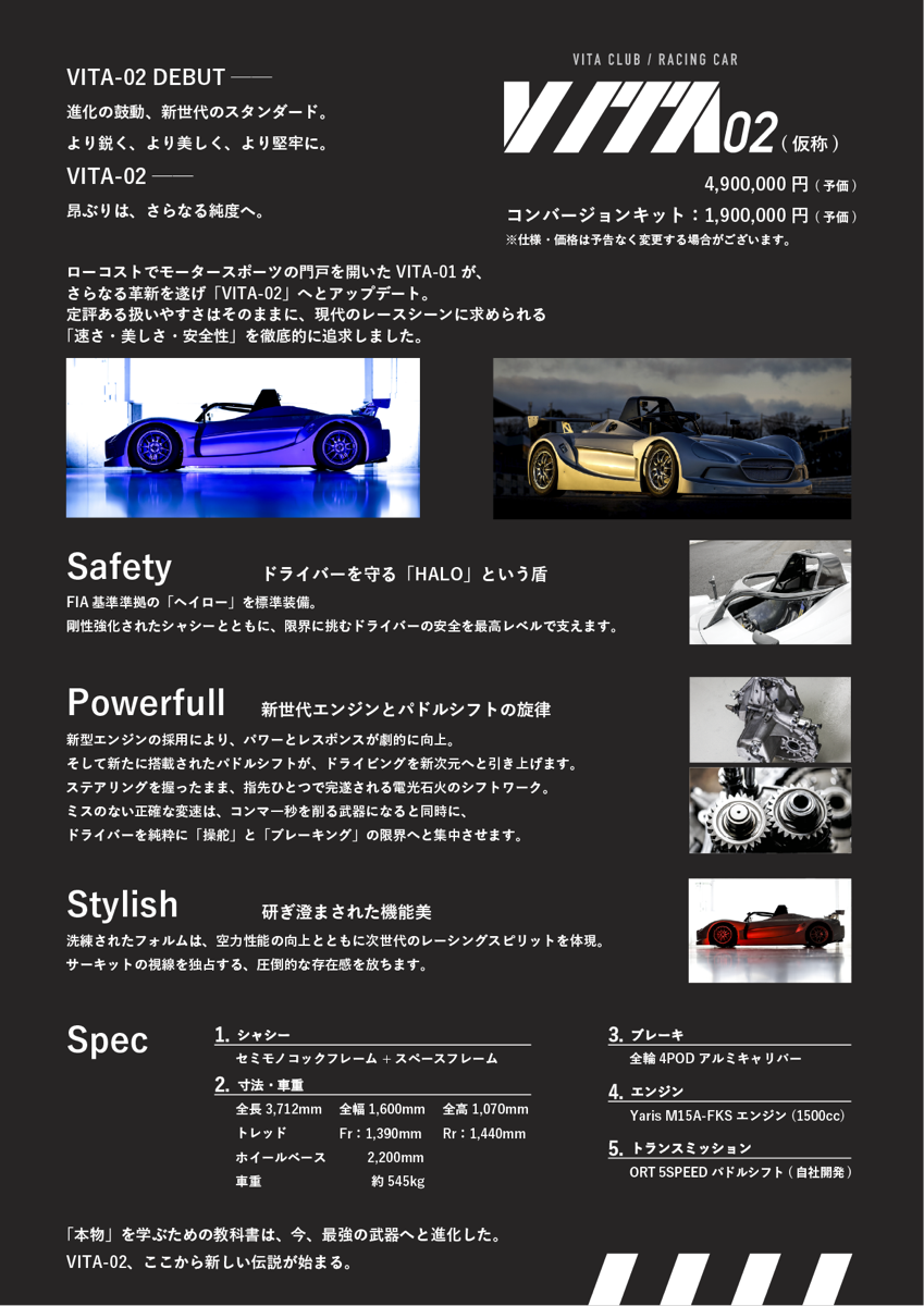 ローコストでモータースポーツの門戸を開いたVITA-01が、さらなる革新を遂げ「VITA-02」へとアップデート。